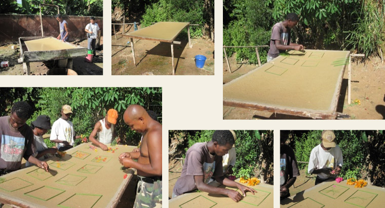 L'uso della carta antaimoro fu introdotto in Madagascar dagli Arabi intorno al 1300, prima dell'arrivo degli europei sull'isola. Fu il popolo Antaimoro, l'etnia malgascia cui si deve la introduzione della scrittura, a svilupparne la produzione, utilizzandola per la stesura dei Sorabe, i testi sacri malgasci.Il processo di produzione utilizzato per la carta di antemoro è ancora quello tradizionale. Le fibre di corteccia della pianta di avoha vengono bollite in grossi calderoni per oltre 3-4 ore e quindi ridotte ad una poltiglia servendosi di pestelli di legno. La pasta così ottenuta viene poi diluita con acqua, stesa su un panno di cotone fissato ad un telaio di legno, ed esposta all'aria per l essiccazione. I fogli grezzi vengono successivamente decorati con fiori secchi e ricoperti da un ulteriore sottile strato di pasta diluita. Una volta completata l'essiccazione i fogli vengono distaccati dai telai, piegati e tagliati in base all'utilizzo previsto. Un'antica tradizione tramandata dalla famiglia araba Anteimoro nel 1300.Manualità e l'esperienza degli artigiani Malgasci danno vita ad oggetti unici, come sacchetti, scatole, album portafoto, libri e confezioni di vario genere e misure.